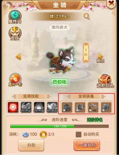 3、提升等阶可佩戴更强大的装备,获得大量属性