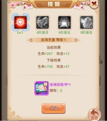 4、提升等阶能够激活对应等阶的技能,其中最后一个技能可解锁稀有属性效果