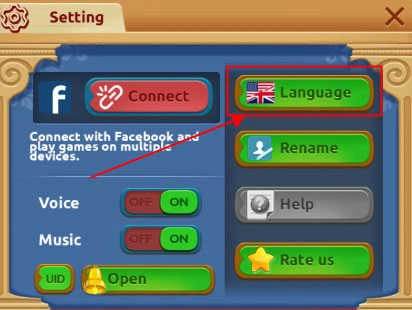 2、完成教程后回到主界面,先打开右上方的“齿轮”设置,你会发现一个“语言”栏,位置如箭头指向处。