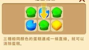 3.当4个相同颜色的蛋糕连成一条线时,就会生成冰淇淋;通过双击冰淇淋,或是将它与其他蛋糕交换位置,能够消除更多不同的蛋糕。