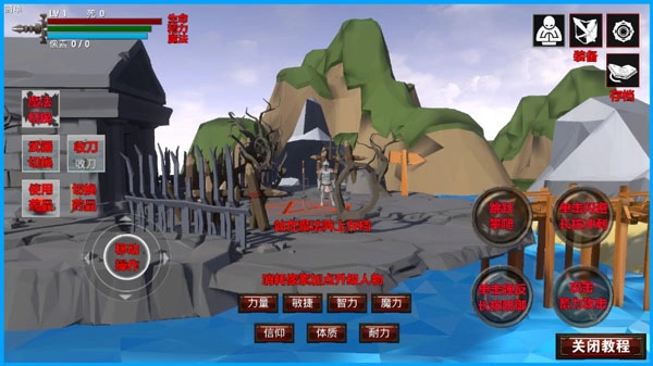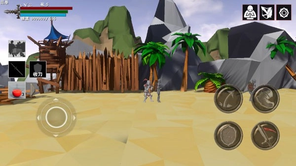 1、采用虚拟摇杆进行操控,攻击、格挡、跳跃、加速等动作均可一键释放。