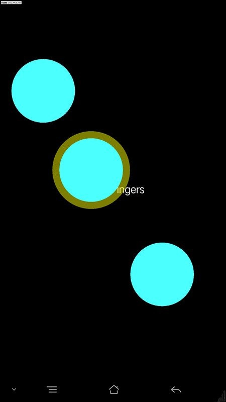 每个人把一根手指放在屏幕上,就能看到每根手指都有光圈。像下面这张图,显示的是两根手指。