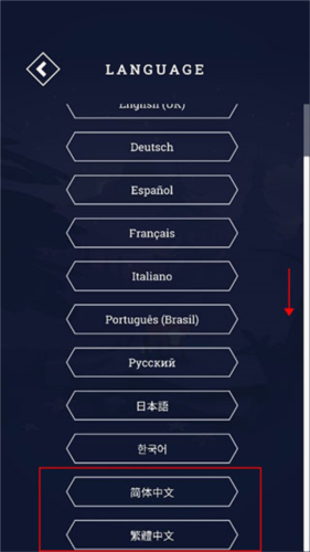 3、接着向下滑动页面,就能看到简体中文和繁体中文的选项,点击对应的选项即可切换为中文界面。