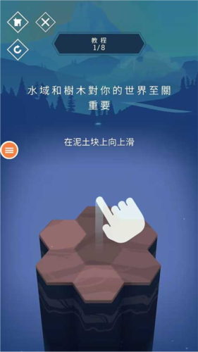 2、水与树木的生长在这个世界里意义重大,向上滑动即可生成六边形网格地图。