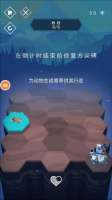 在某个六边形格子的位置下拉操作,会使该格子所在行整体后移一格,从而空出一个新格子。小动物仅能在已转化为草地的格子上活动,而若要将六边形格子转变为草地,在开荒区域内,玩家选定的格子必然会生成湖泊。
