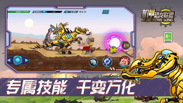 1、每台机甲的设计原型均取自史前恐龙,其中三角甲龙尤为擅长防御反击,为战斗增添了丰富多样的风格。