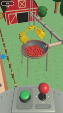 2、先栽种一批当季苹果,熟悉果树的生长周期,等苹果成熟后,通过操作摇杆来控制吊车移动,点击“抓取”按钮把苹果放置到运输车上,以此完成首次采摘。