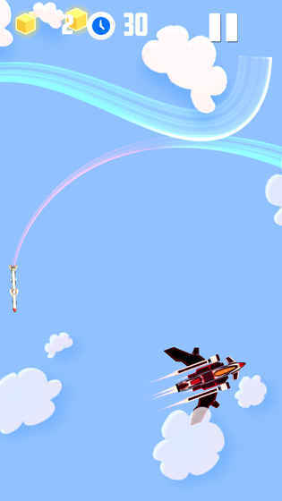 操控你的飞机翱翔于天际,同时留意避开从各个方向袭来的导弹。