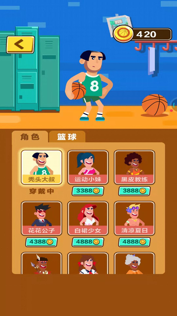 3. 玩家能够使用金币兑换各类角色,还有那些被称作华丽篮球的特效。