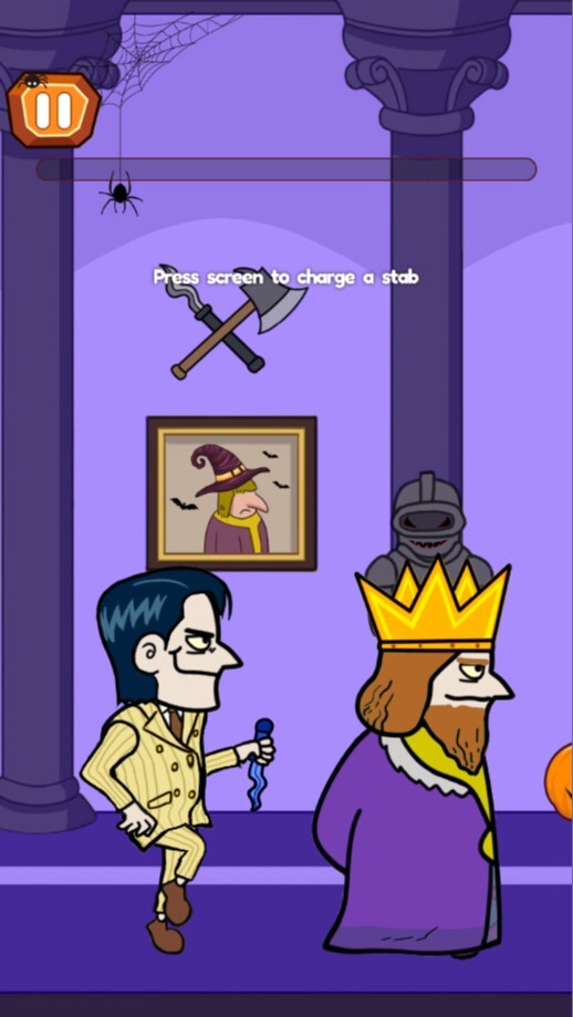 当角色靠近国王时,长按屏幕进行蓄力操作,待蓄力条填满后,角色便会挥刀刺向国王。在蓄力过程中,一旦察觉到国王有回头的动作,要马上松开手指,避免被其抓住。