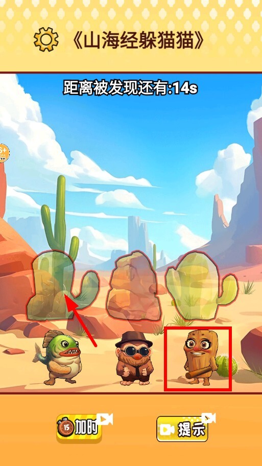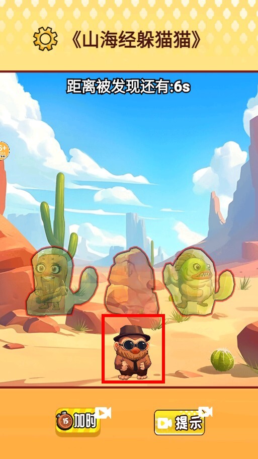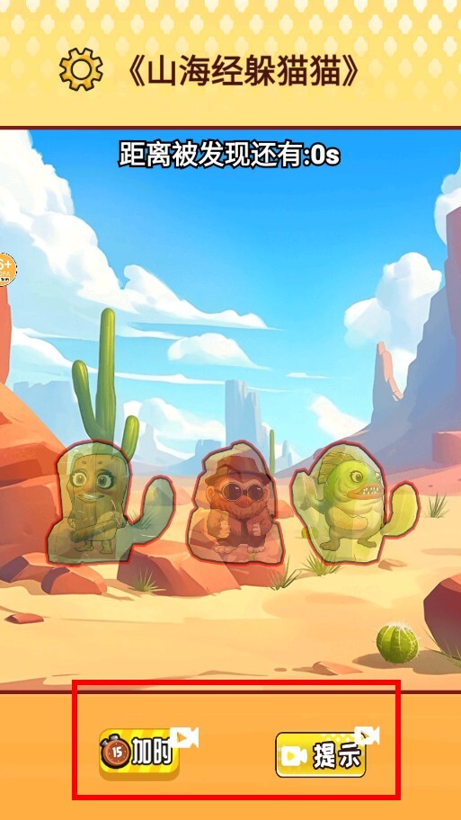 2、当倒计时结束时,如果角色没能完成隐藏,就会暴露在场景中,这时可以点击加时或者提示按钮,试着获得更多时间或者隐藏的线索。