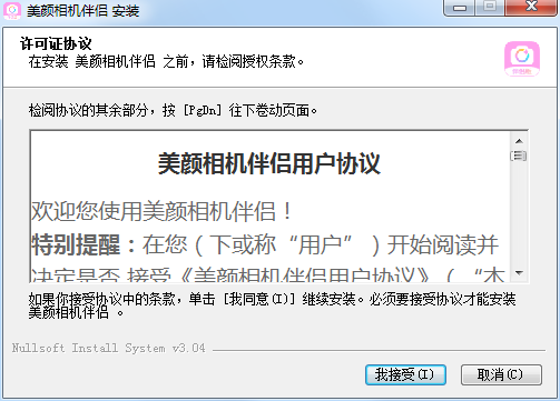 在进行安装操作前,请仔细阅读许可证协议中的授权条款,若同意相关内容,点击“我接受”按钮即可继续安装流程。