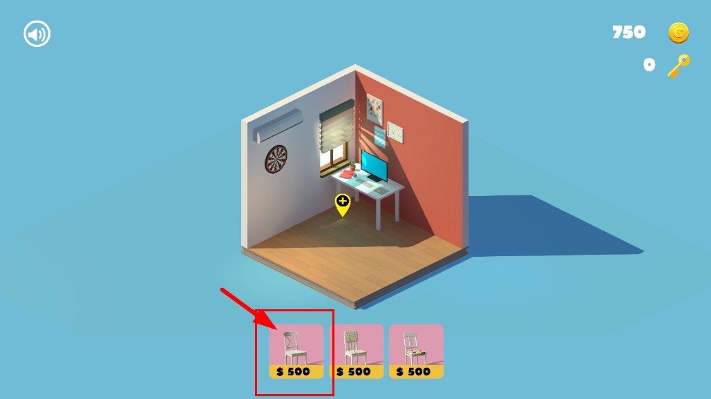 在家具挑选界面,选定售价500的椅子这类家具,完成选择确认后进入组装流程,着手准备拼接家具各部件。