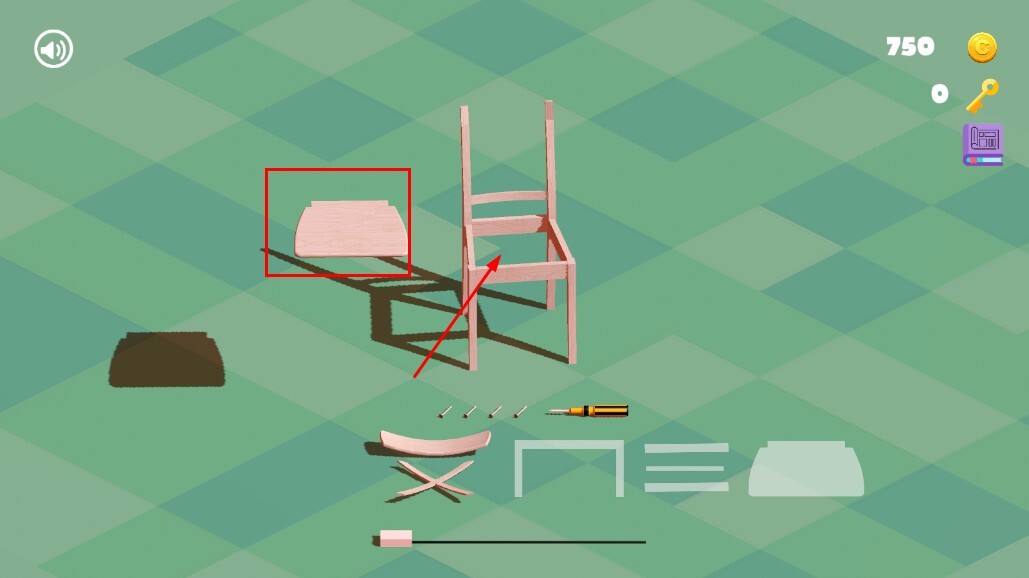 3、按照提示,把椅子的椅面、椅腿等各个部件,依据对应位置开展拼接,逐步搭建出完整的椅子雏形。