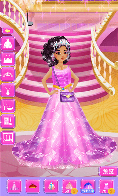 3、游戏里准备了丰富多样的服饰与饰品,可供选择的范围更广。选好这些之后,可别忘了给公主打造出漂亮的妆容哦。