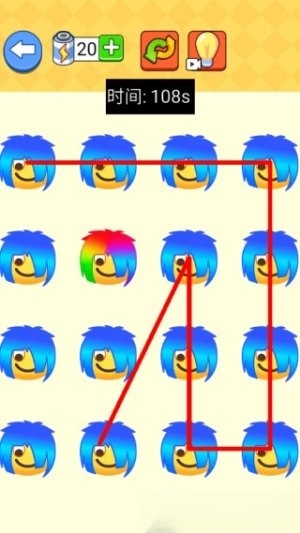3.用手指在屏幕上滑动来操控画笔移动,画出连续的线条将蓝色头发的小人与终点连接起来,整个过程中不能碰到彩色头发的小人。